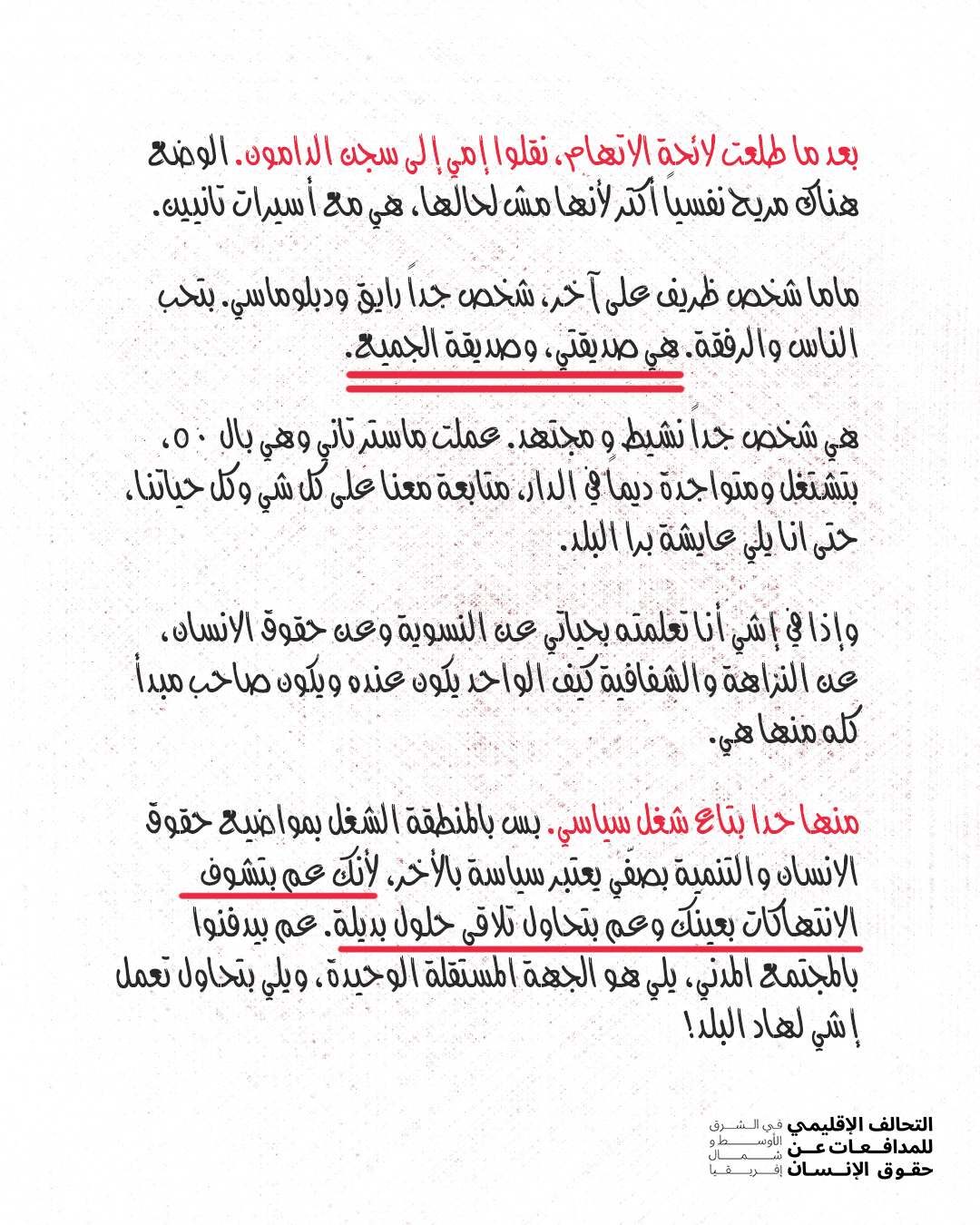 أوقفوا تجريَم المدافعةِ عن حقوق الإنسان شذى عودة