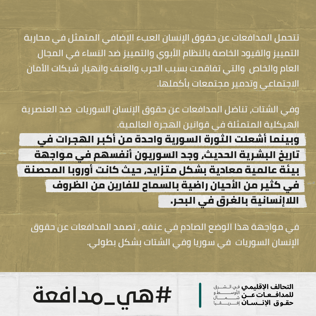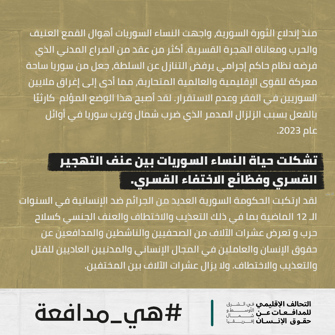 في سوريا #هي ـ مدافعة عن حقها في الحياة والتحرر من التعذيب والاعتقال التعسفي، وحقهن في اللجوء الكريم