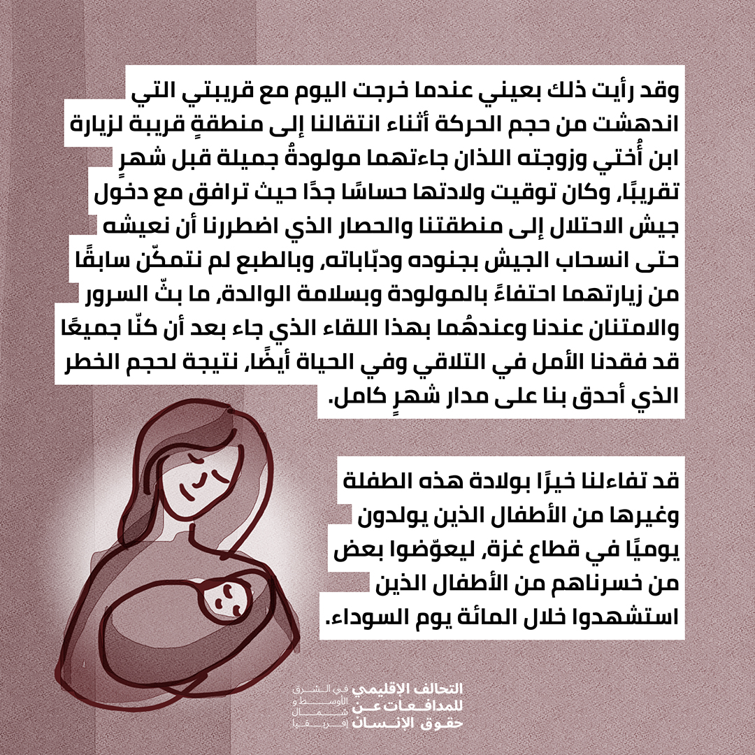 يوميات مدافعة تحت القصف: الحياة تتجدد بميلاد أطفال جدد، والعدوان الصهيوني يشتد شراسة