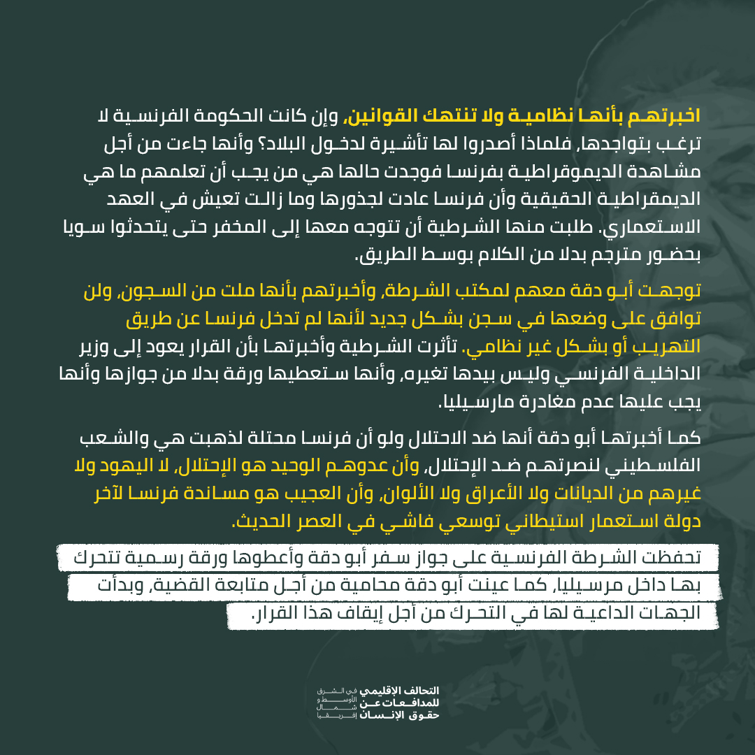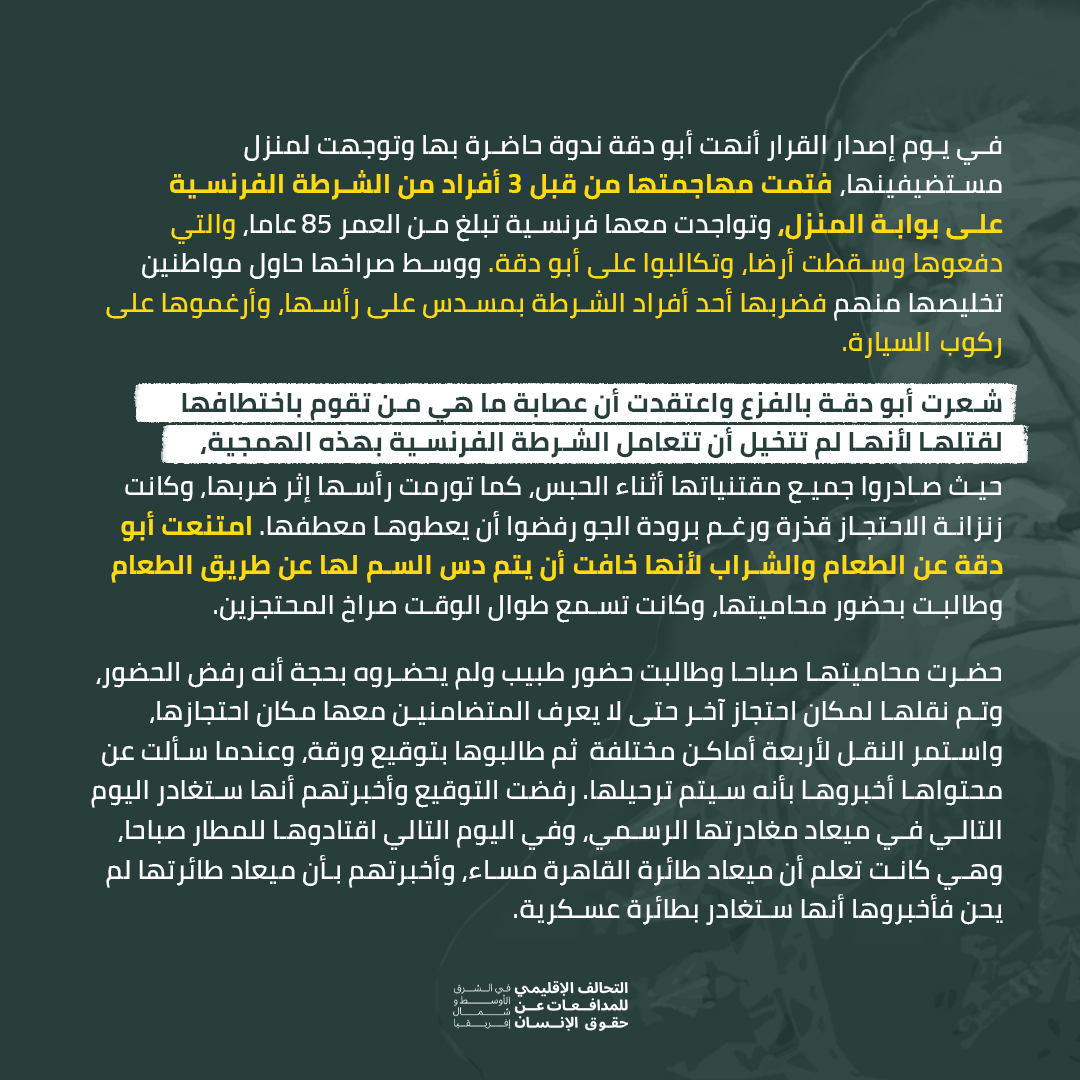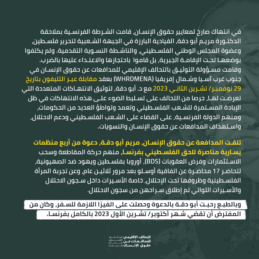 استهداف د. مريم أبو دقة والاعتداء عليها من قبل السلطات الفرنسية