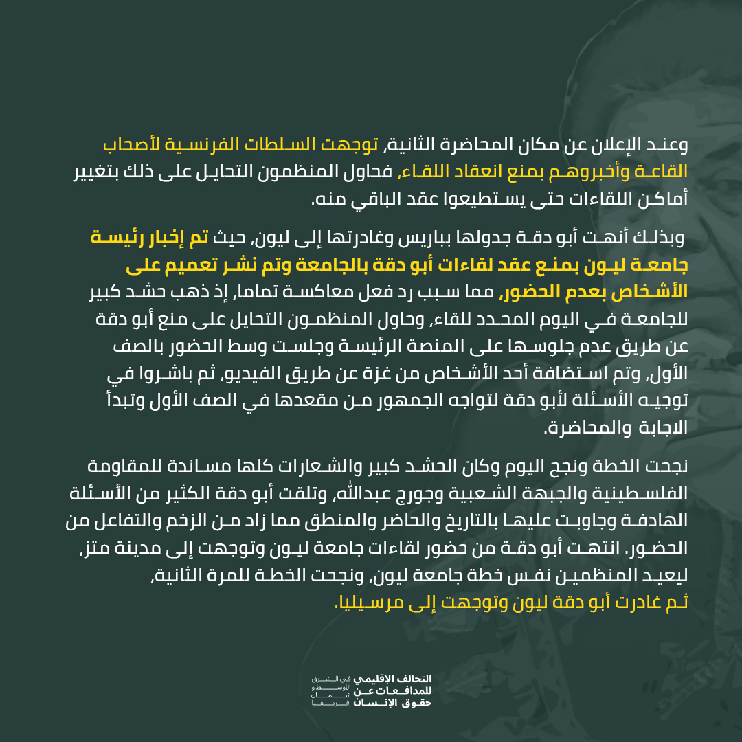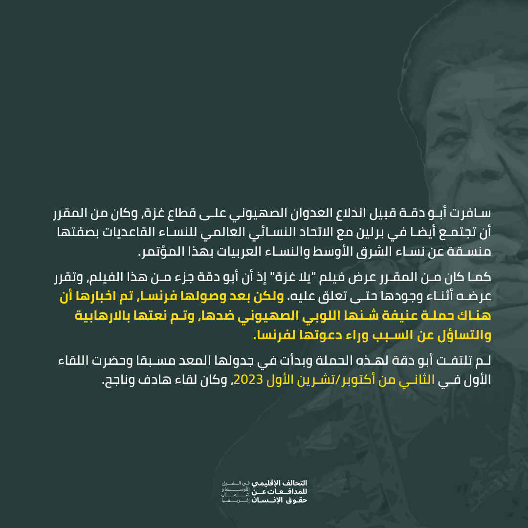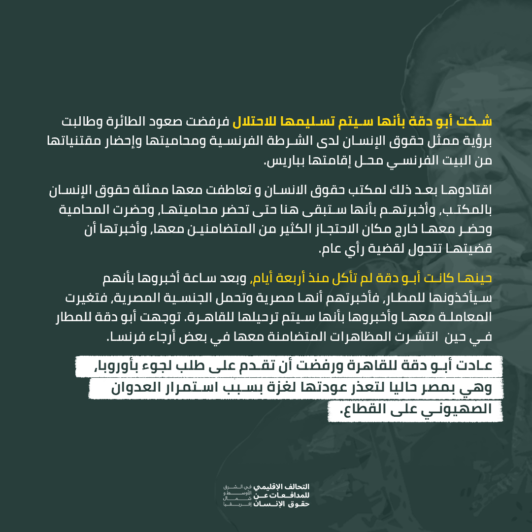 استهداف د. مريم أبو دقة والاعتداء عليها من قبل السلطات الفرنسية