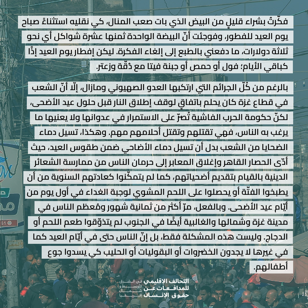 يوميات مدافعة تحت القصف: عيد أضحى بلا طقوس ولا أضحيات في قطاع غزة، ودماء الضحايا لم ولا تجف