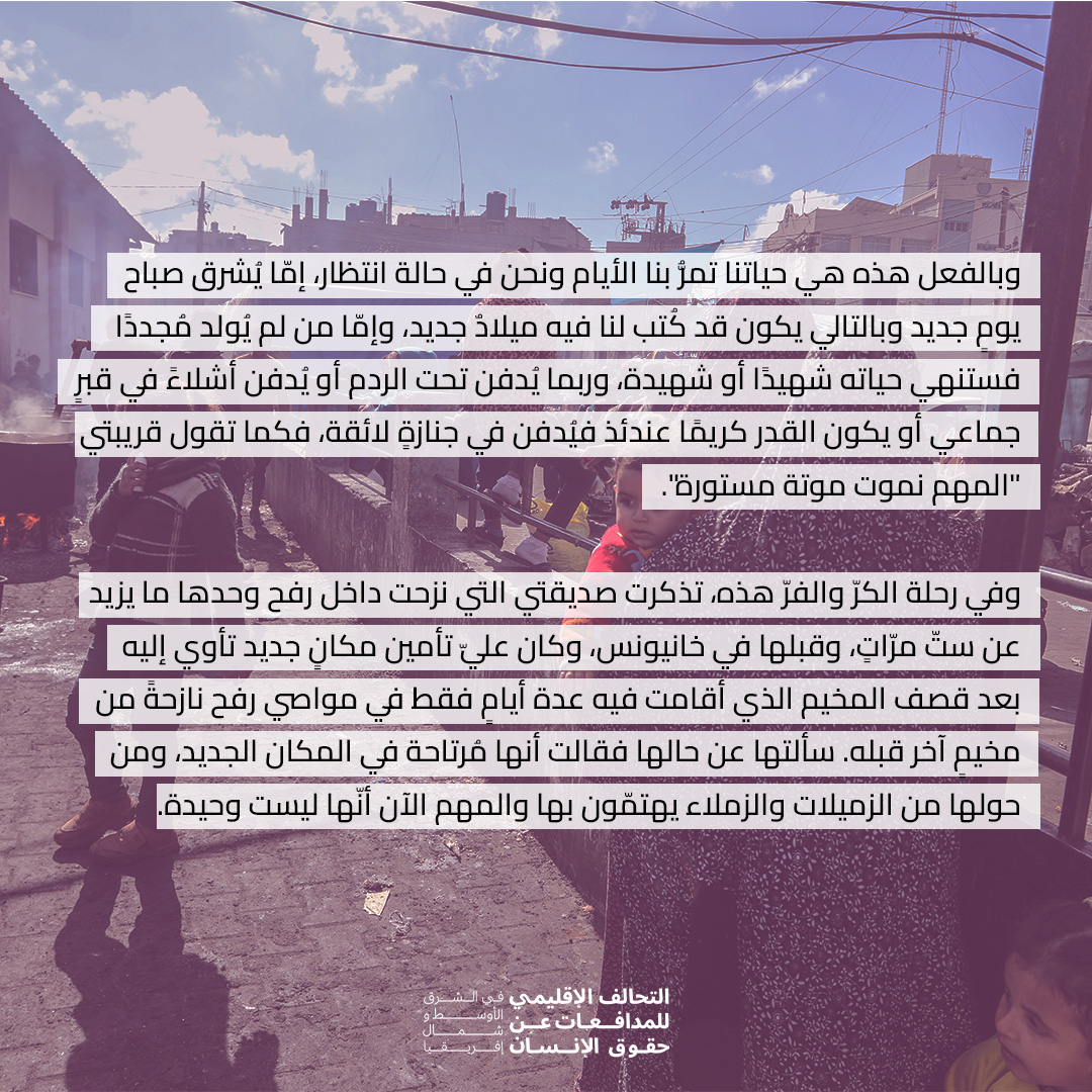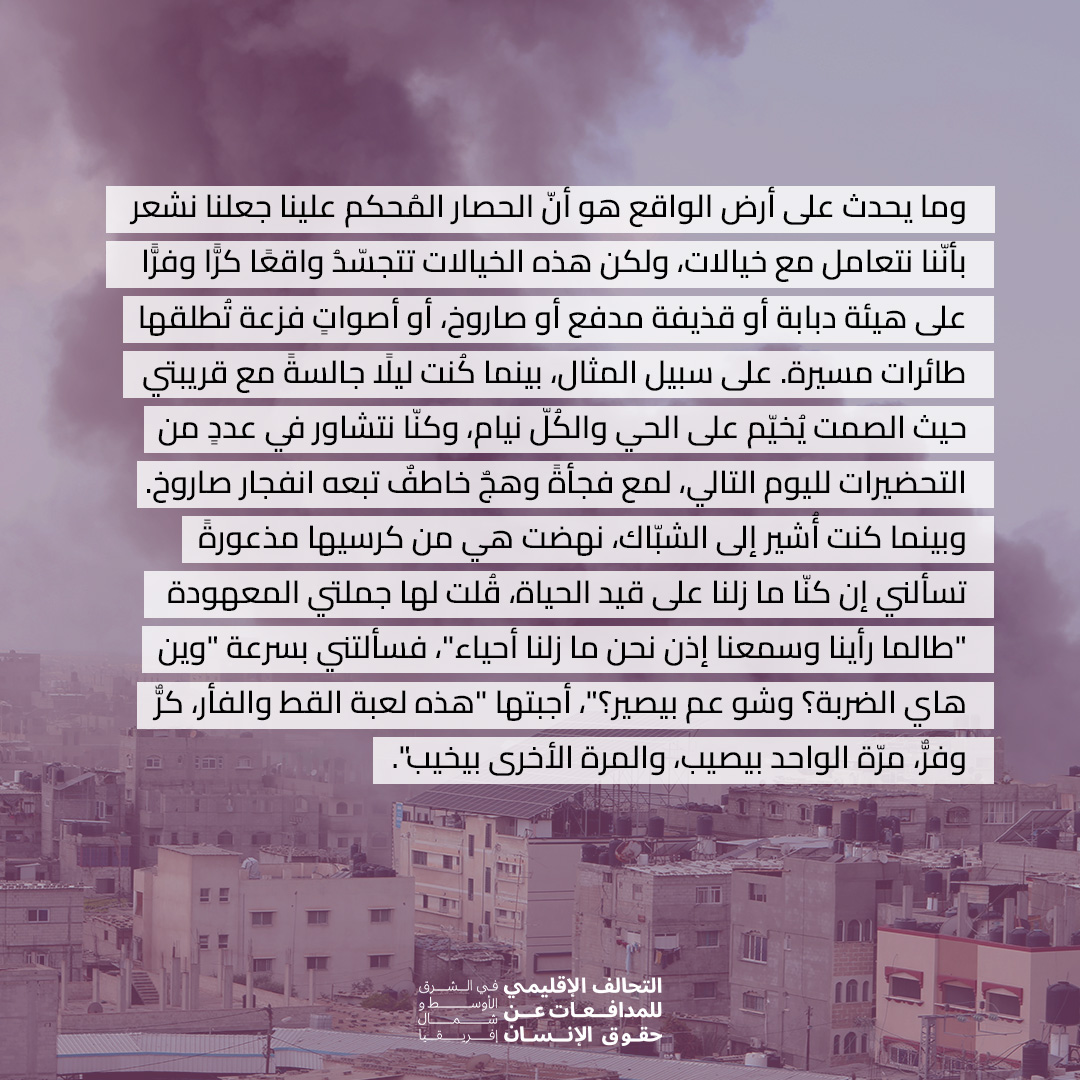 يوميات مدافعة تحت القصف: الكر والفر سمة العيش بين الحياة والموت أثناء هذا العدوان الصهيوني على قطاع غزة
