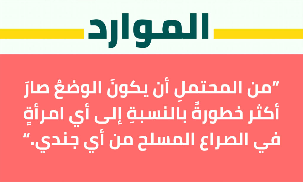 “من المحتملِ أن يكونَ الوضعُ صارَ أكثر خطورةً بالنسبةِ إلى أي امرأةٍ في الصراع المسلح من أي جندي”