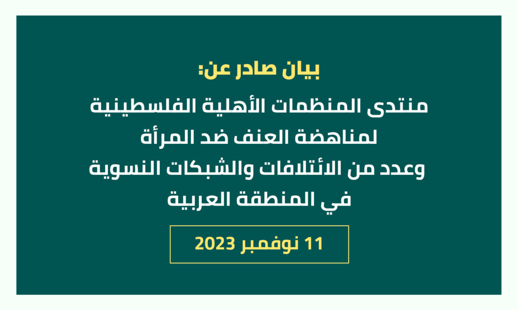 بيان صادر عن: منتدى المنظمات الأهلية الفلسطينية لمناهضة العنف ضد المرأة وعدد من الإئتلافات والشبكات النسوية في المنطقة العربية