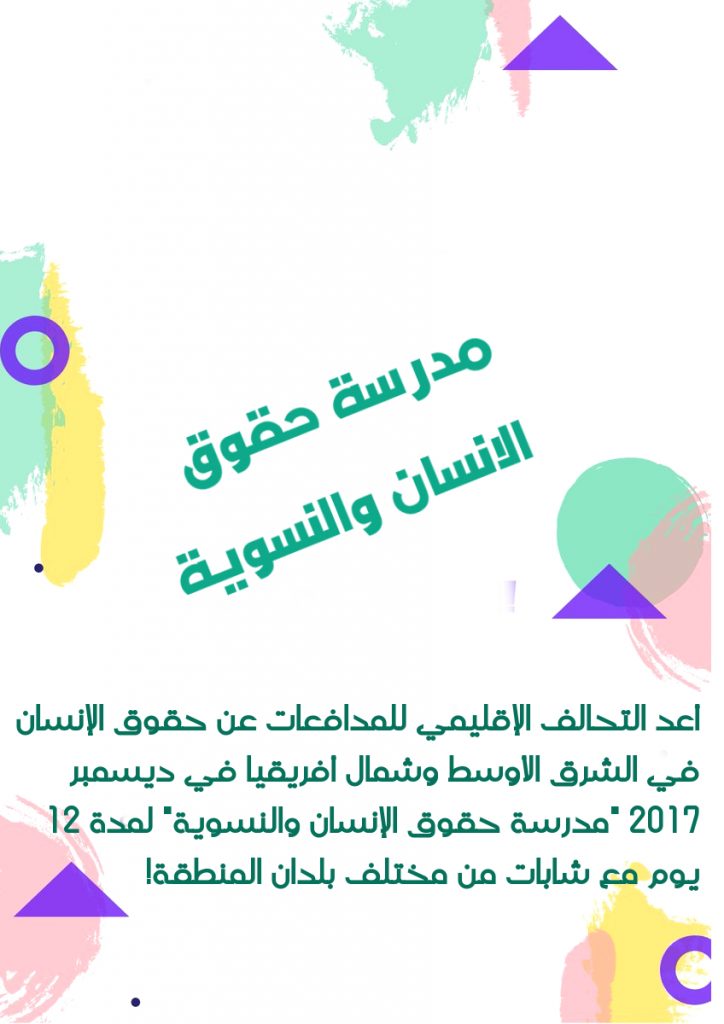 مدرسة حقوق الانسان والنسوية! أعد التحالف الإقليمي للمدافعات عن حقوق الإنسان في الشرق الأوسط وشمال أفريقيا في ديسمبر 2017 "مدرسة…