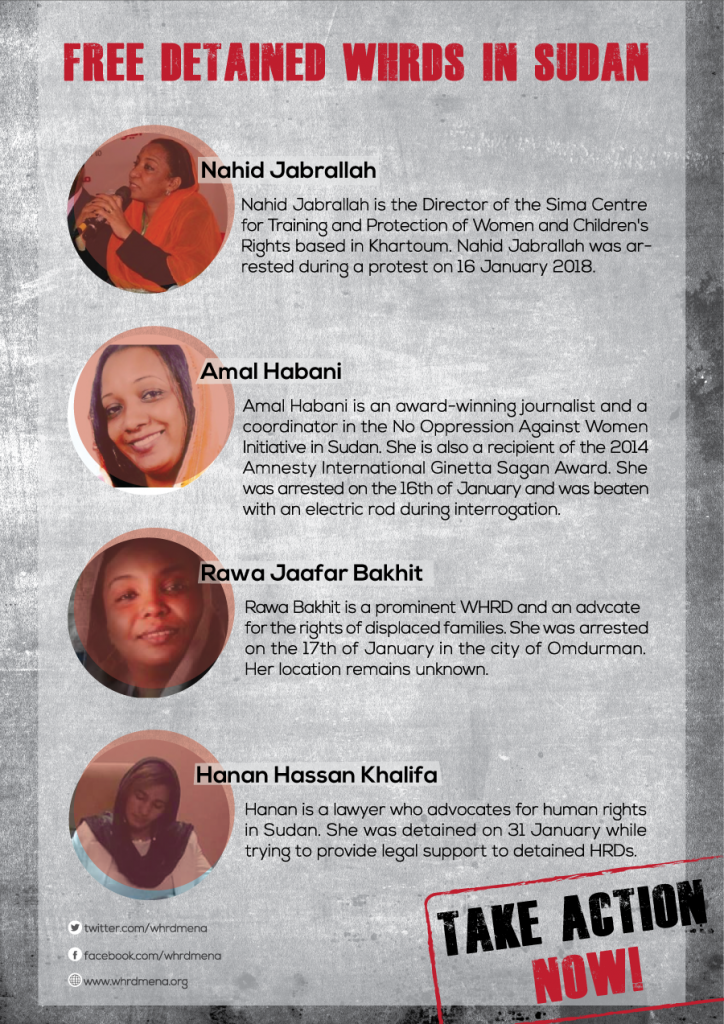 الافراج عن المدافعات عن حقوق الإنسان في السودان! شهدَ السودانُ في شهر يناير/كانون الثاني وفبراير/شباط الماضيين تظاهراتٍ في عددٍ من…