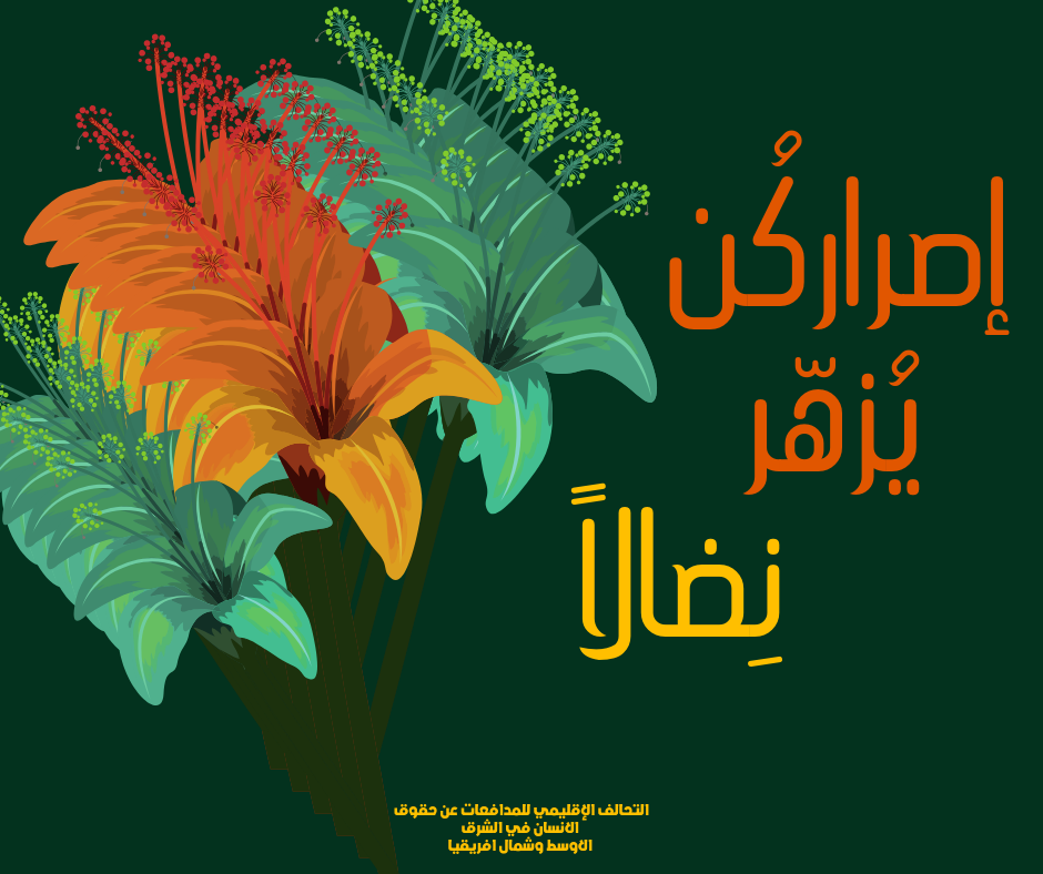 إصرارُكن يُزهرُ نضالاً منذ تأسس "التحالفُ الإقليمي للمدافعاتِ عن حقوقِ الإنسانِ في الشرقِ الأوسطِ وشمالِ أفريقيا" كانَ هاجسُ العضوات فيه…