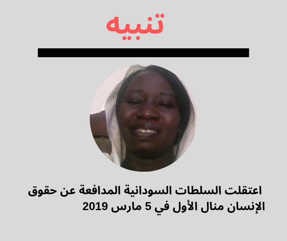 تنبيه: السلطات السودانية تعتقل منال الأول اعتقلت السلطات السودانية اليوم، 5 مارس 2019، المدافعة عن حقوق الإنسان منال الأول من…