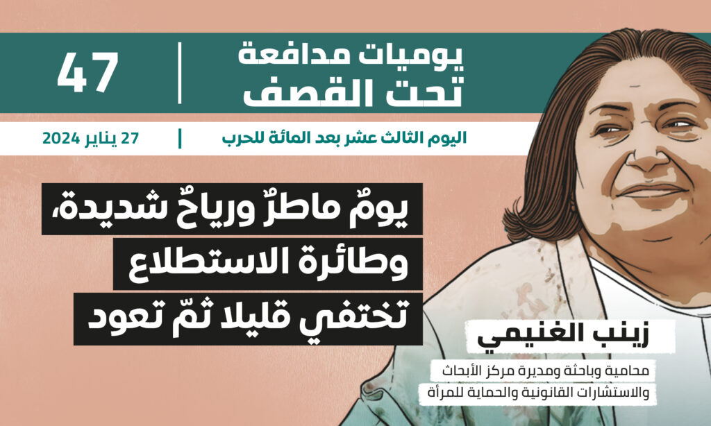 يوميات مدافعة تحت القصف: يوم ماطر ورياح شديدة، وطائرة الاستطلاع تختفي قليلا ثم تعود