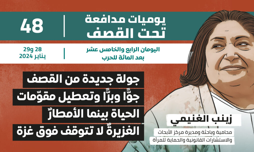 يوميات مدافعة تحت القصف: جوا وبرا وتعطيل مقومات الحياة بينما الأمطار الغزيرة لا تتوقف فوق غزة