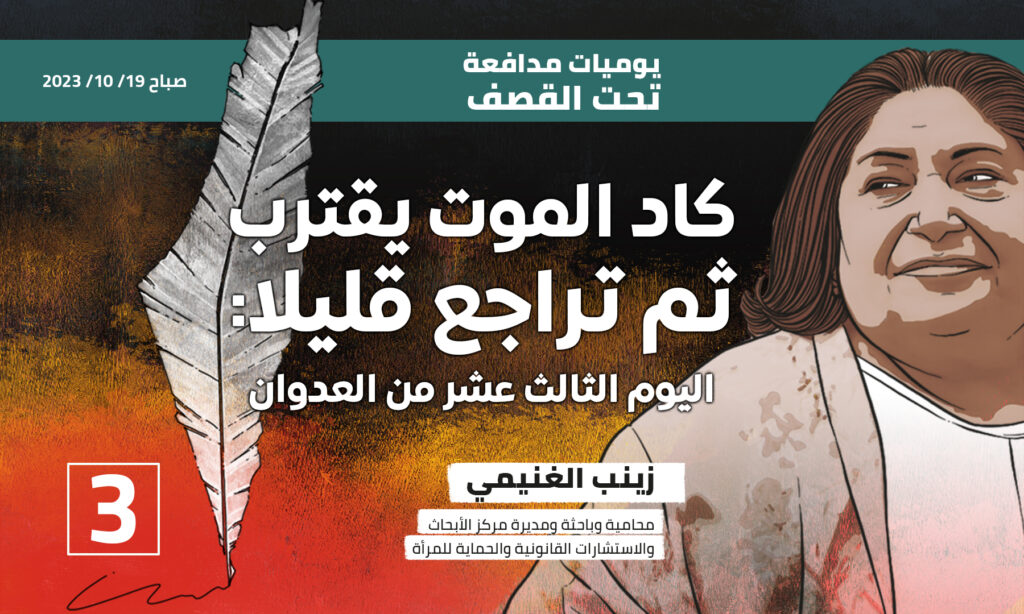 يوميات مدافعة تحت القصف: كاد الموت يقترب ثم تراجع قليلا، اليوم الثالث عشر من العدوان