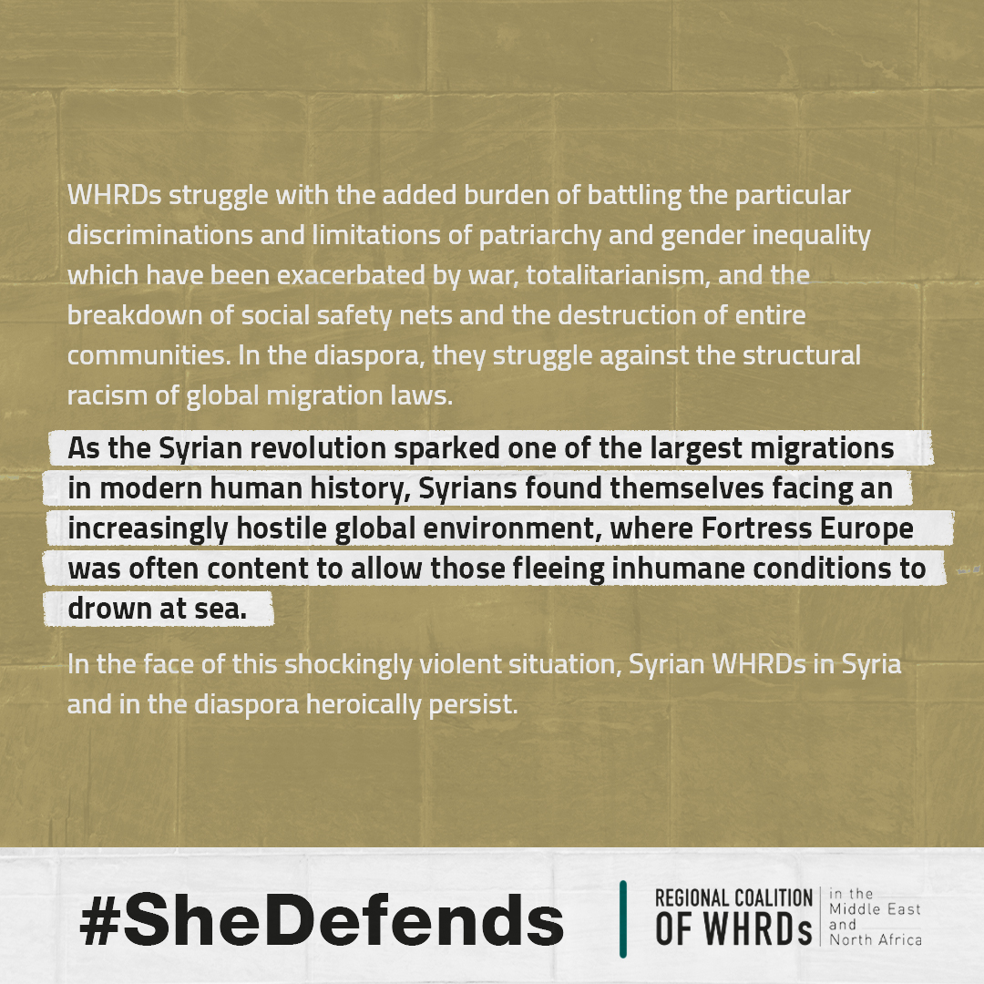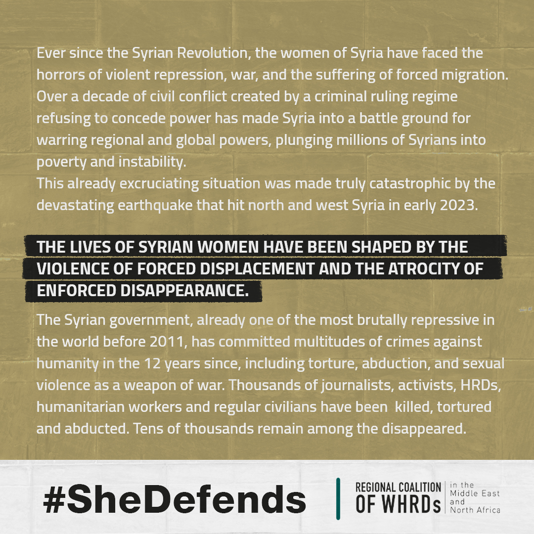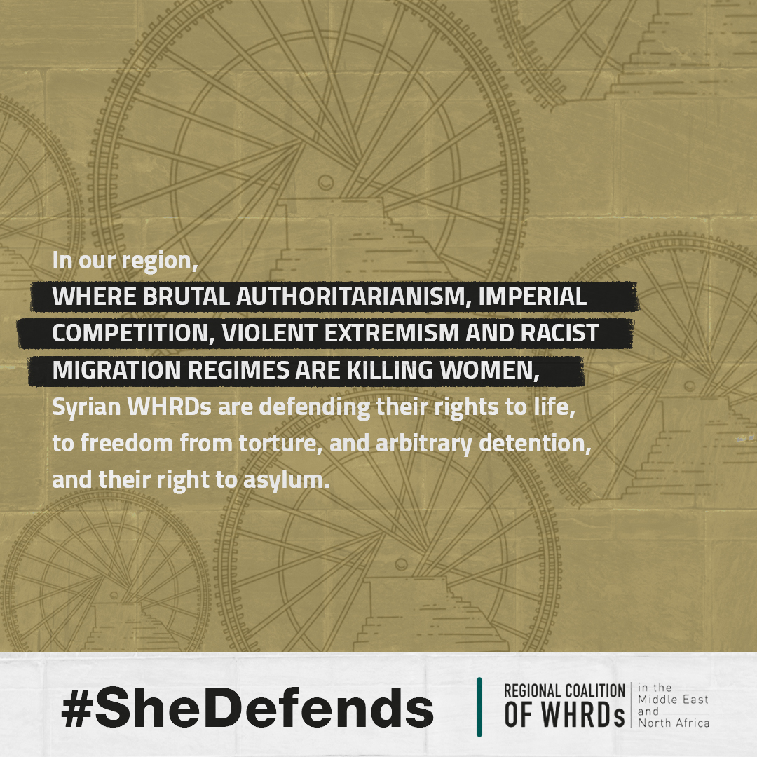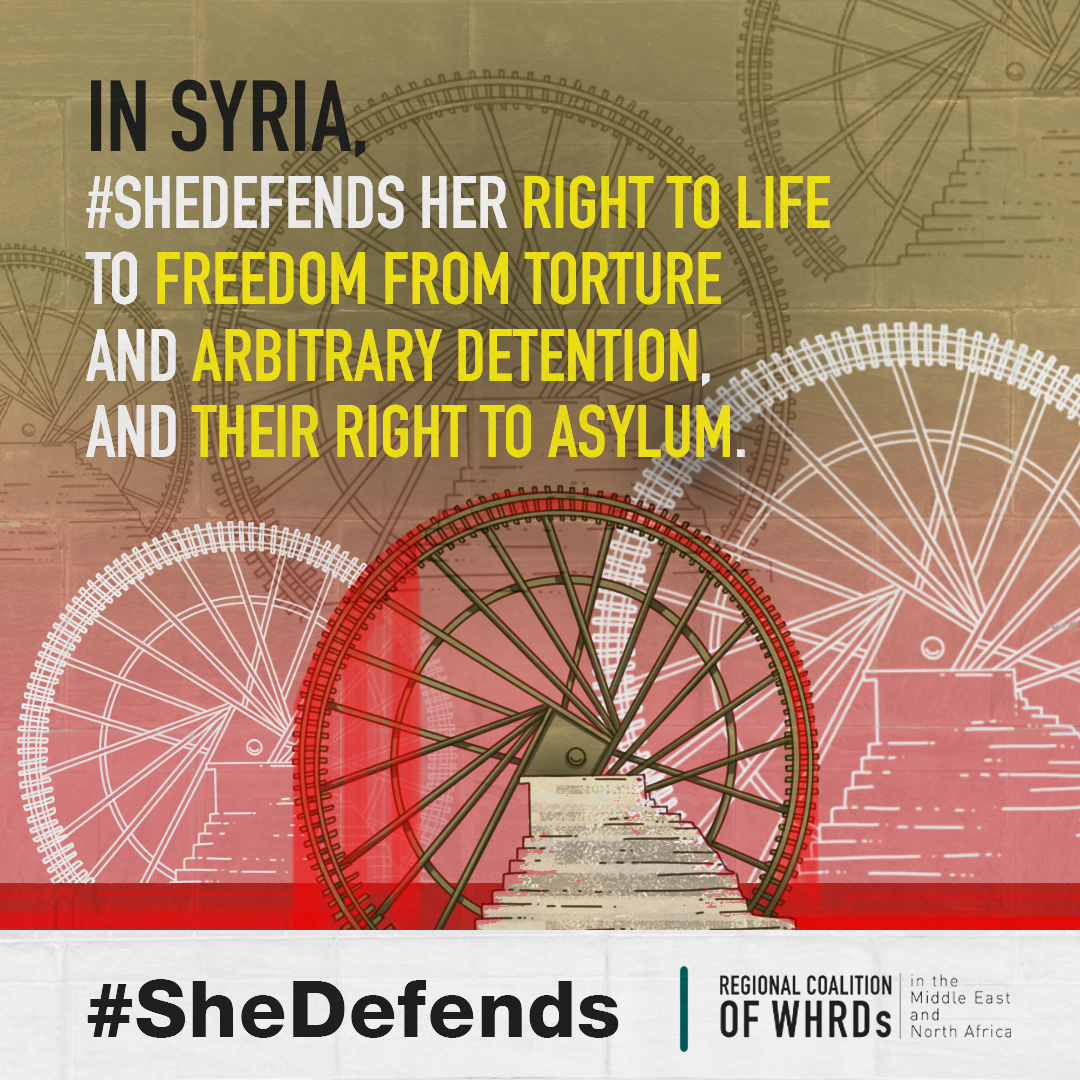 In Syria, #SHEDEFENDS her right to life, to freedom from torture, and arbitrary detention, and their right to asylum