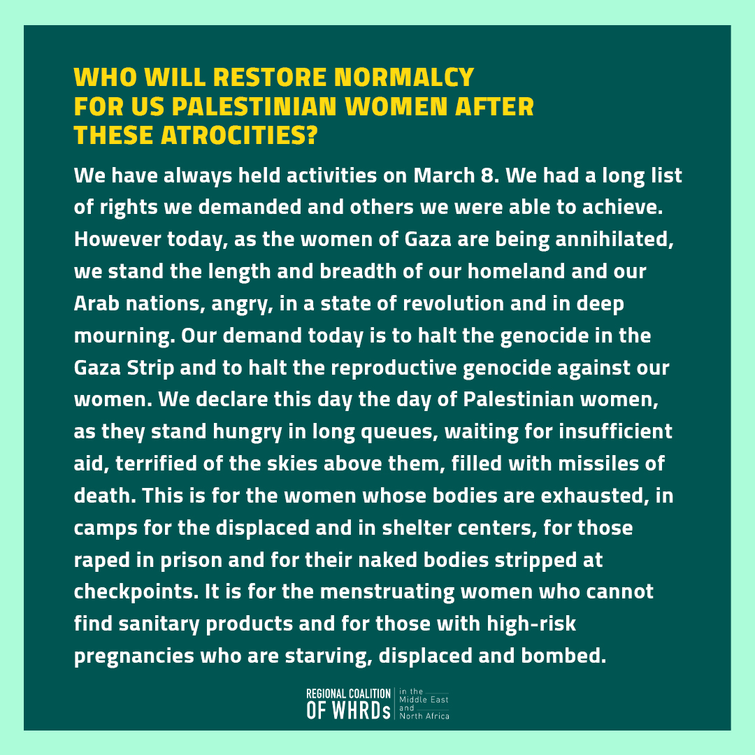 Statement on the occasion of march 8 WHERE are the rights of Palestinian women on international women’s day?