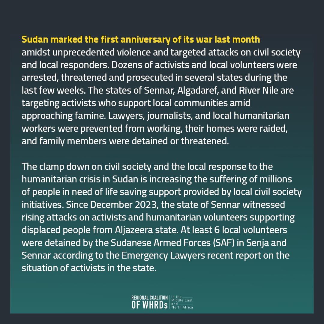 Sudan: closure of civic space, crackdown on humanitarian workers and activists