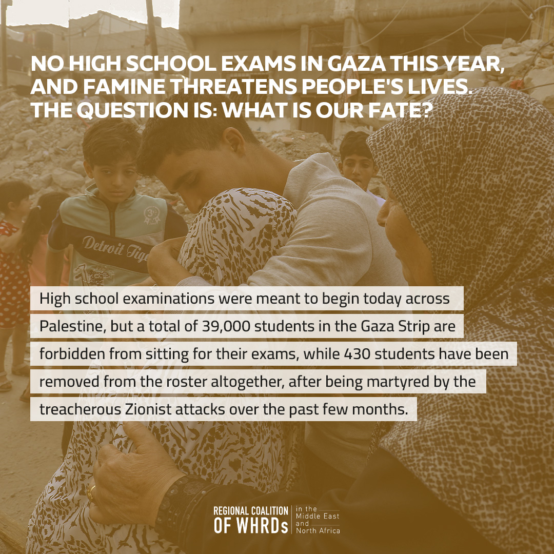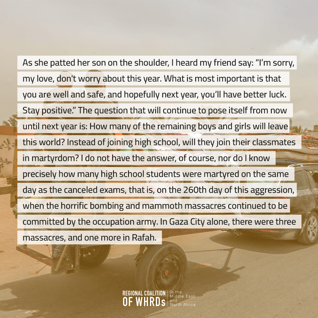 Dispatches From a WHRD Under Seige: No high school exams in Gaza this year, and famine threatens people’s lives. the question is: what is our fate?