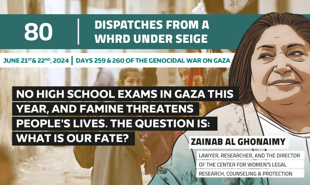 Dispatches From a WHRD Under Seige: No high school exams in Gaza this year, and famine threatens people’s lives. the question is: what is our fate?
