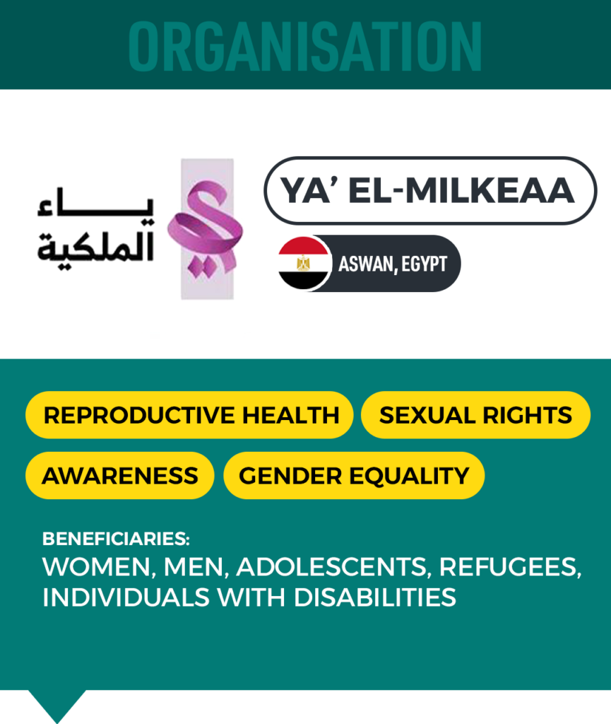 Ya ‘ El-Milkeaa is a young initiative established in 2022 under the umbrella of the Southern Free Foundation. It focuses on raising awareness and educating the community about reproductive health, sexual rights, and empowering women. The initiative seeks to break taboos around sexual and reproductive health discussions, correct misconceptions, and ensure women’s rights to a healthy life free from discrimination. The initiative works to create an inclusive, safe space for marginalized groups, such as refugees and people with disabilities, to access education on sexual and reproductive health.