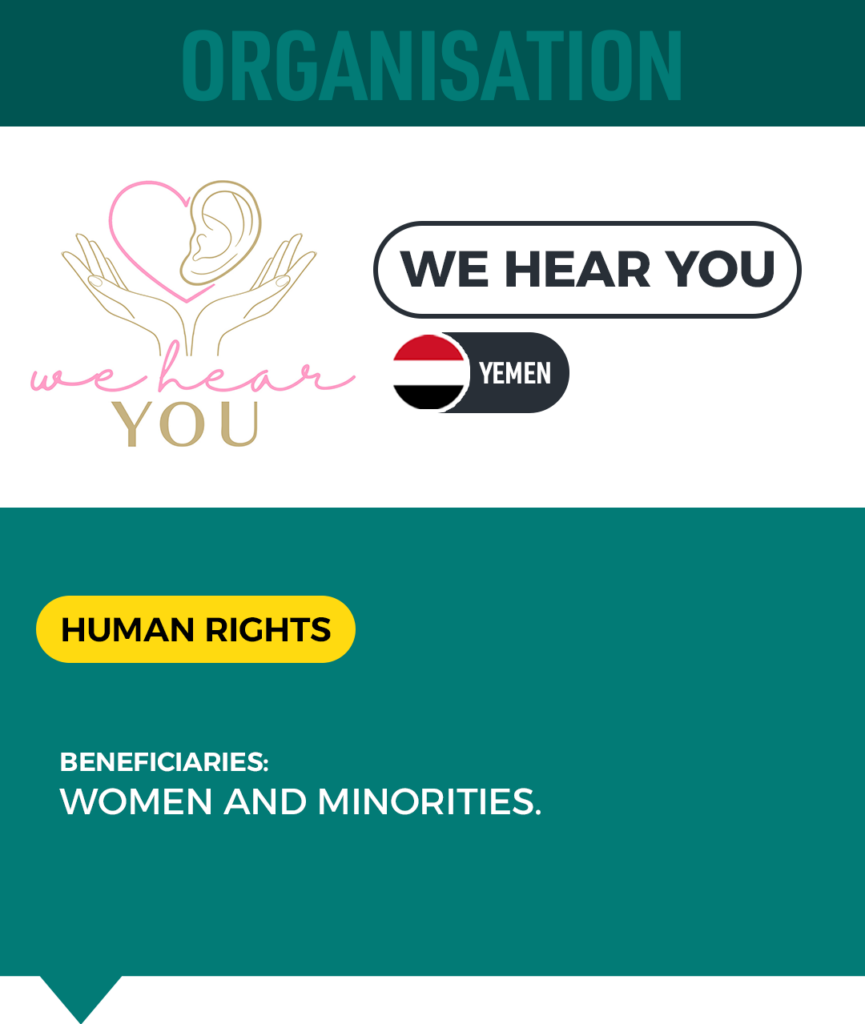 We Hear You is dedicated to promoting and protecting the rights of women and minorities in Yemen, empowering them to raise their voices and advocate for equality and representation in the media. The organization aims to challenge stereotypes, combat discrimination, and create a more inclusive media landscape. Through advocacy, awareness campaigns, and partnerships, it strives to amplify marginalized voices, foster dialogue, and drive social change for a more equitable society.