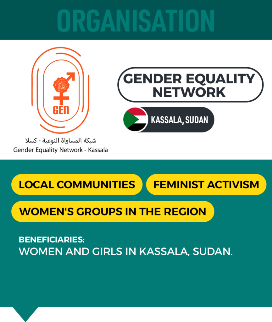 The Gender Equality Network in Kassala aims to promote women’s and girls’ rights and ensure their active participation in all aspects of life through awareness, capacity building, advocacy, and pushing for fair policies that achieve justice and equality. The network seeks to create a supportive environment for women’s empowerment and to eliminate all forms of gender-based discrimination and violence for a more just and equitable society.
