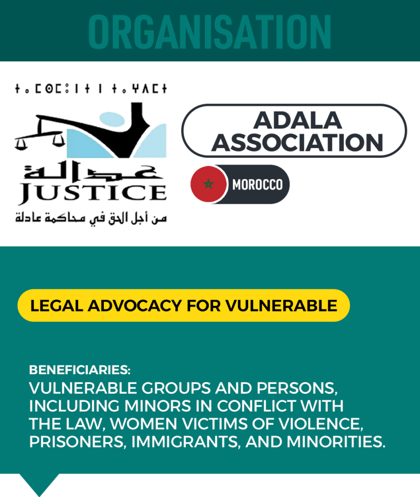 ADALA “For the Right to a Fair Trial” is a non-profit association founded in October 2005 in Rabat by lawyers, university professors, and student researchers. It works toward judicial and penal system reform by promoting independence, integrity, and competence.