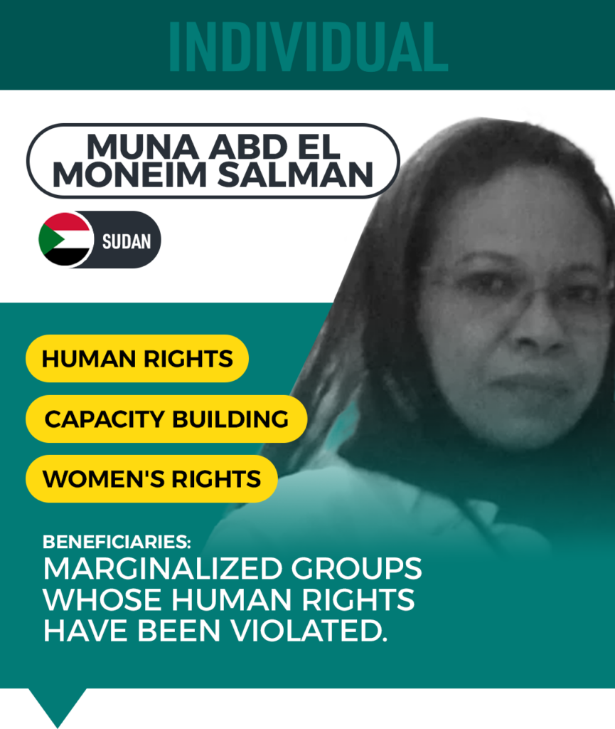 Muna focuses on building the capacities of marginalized groups to advocate for their fundamental rights, promoting human dignity and the right to life. Her work primarily targets women’s rights, legal awareness, and human rights education, especially in the workplace, aiming to reduce violations and empower communities.